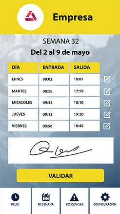 Desde la app, los trabajadores podrán indicar cuando entran, cuando salen a comer, cuando marchan a casa. En tiempo real esta información se reflejará en tu panel de control
